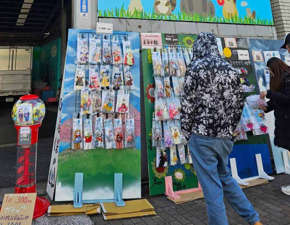 なんと手作りのぬいぐるみが並べられて販売されていました。